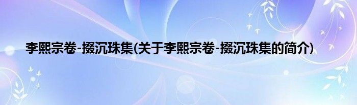 大家好,李熙宗卷-掇沉珠集,关于李熙宗卷-掇沉珠集的简介很多人还不知道,现在让我们一起来看看吧!