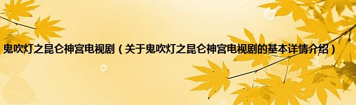 本文关于鬼吹灯之昆仑神宫电视剧的基本详情介绍就讲解完毕,希望对大家有所帮助。