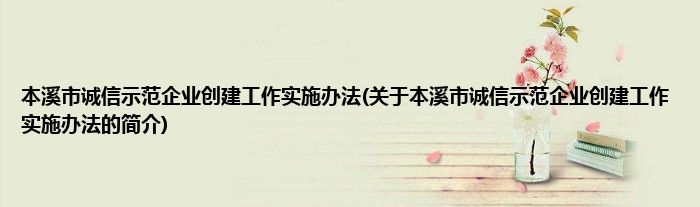 本溪市诚信示范企业创建工作实施办法(关于本溪市诚信示范企业创建工作实施办法的简介)