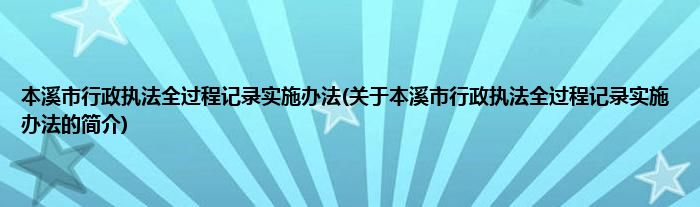 本溪市行政执法全过程记录实施办法(关于本溪市行政执法全过程记录实施办法的简介)