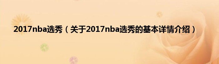 本文关于2017nba选秀的基本详情介绍就讲解完毕,希望对大家有所帮助。