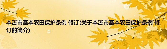 大家好,本溪市基本农田保护条例 修订,关于本溪市基本农田保护条例 修订的简介很多人还不知道,现在让我们一起来看看吧!