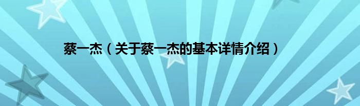 本文关于蔡一杰的基本详情介绍就讲解完毕,希望对大家有所帮助。