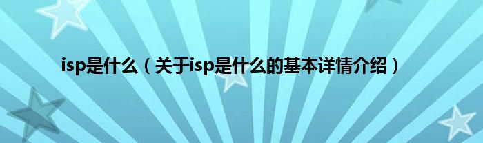 本文关于isp是什么的基本详情介绍就讲解完毕,希望对大家有所帮助。