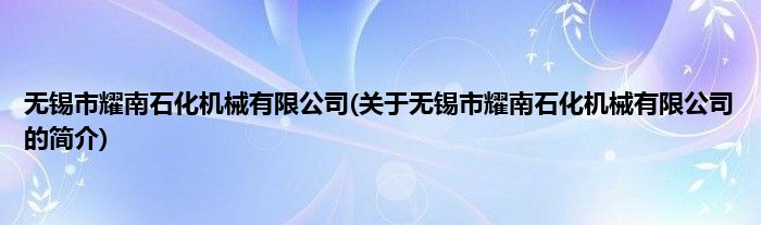 本文关于无锡市耀南石化机械有限公司的简介就讲解完毕,希望对大家有所帮助。