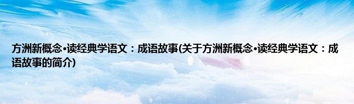 本文关于方洲新概念·读经典学语文:成语故事的简介就讲解完毕,希望对大家有所帮助。