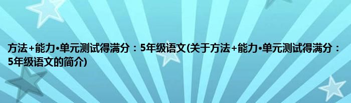 本文关于方法+能力·单元测试得满分:5年级语文的简介就讲解完毕,希望对大家有所帮助。