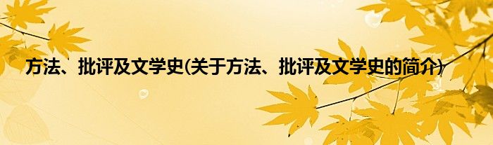 本文关于方法、批评及文学史的简介就讲解完毕,希望对大家有所帮助。