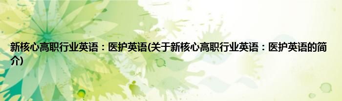 本文关于新核心高职行业英语:医护英语的简介就讲解完毕,希望对大家有所帮助。