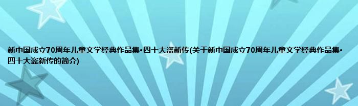 1、 《新中国成立70周年儿童文学经典作品集·四十大盗新传》是2019年北京少年儿童出版社出版的图书。