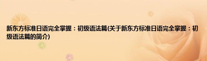 本文关于新东方标准日语完全掌握:初级语法篇的简介就讲解完毕,希望对大家有所帮助。