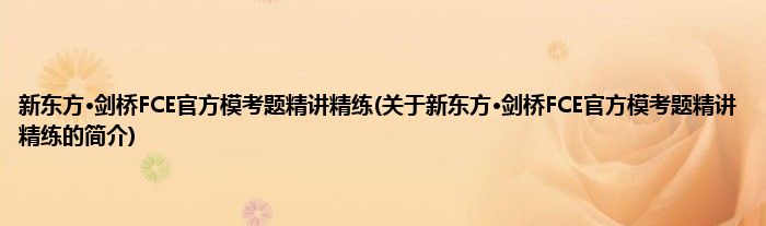 大家好,新东方·剑桥FCE官方模考题精讲精练,关于新东方·剑桥FCE官方模考题精讲精练的简介很多人还不知道,现在让我们一起来看看吧!