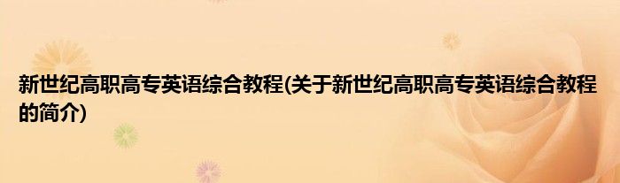 本文关于新世纪高职高专英语综合教程的简介就讲解完毕,希望对大家有所帮助。