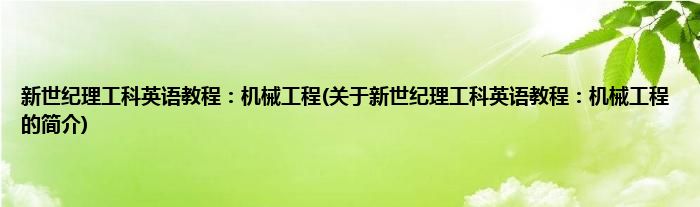 本文关于新世纪理工科英语教程:机械工程的简介就讲解完毕,希望对大家有所帮助。