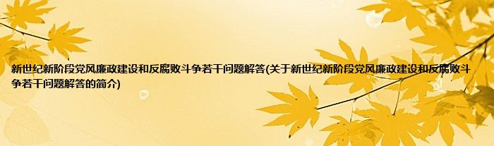 本文关于新世纪新阶段党风廉政建设和反腐败斗争若干问题解答的简介就讲解完毕,希望对大家有所帮助。