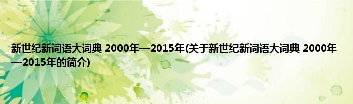 本文关于新世纪新词语大词典 2000年—2015年的简介就讲解完毕,希望对大家有所帮助。