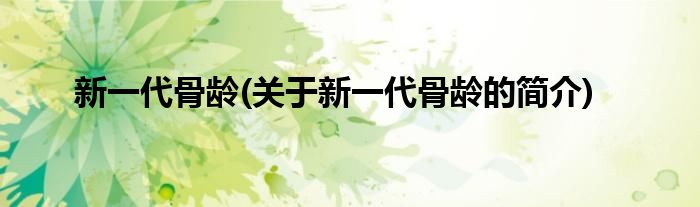 大家好,新一代骨龄,关于新一代骨龄的简介很多人还不知道,现在让我们一起来看看吧!