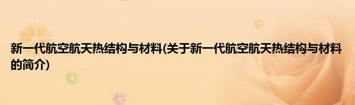 新一代航空航天热结构与材料(关于新一代航空航天热结构与材料的简介)