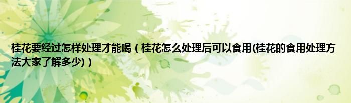 大家好,小科来为大家解答以上问题。桂花要经过怎样处理才能喝,桂花怎么处理后可以食用(桂花的食用处理方法大家了解多少)很多人还不知道,现在让我们一起来看看吧!