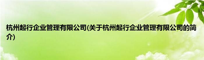 本文关于杭州起行企业管理有限公司的简介就讲解完毕,希望对大家有所帮助。