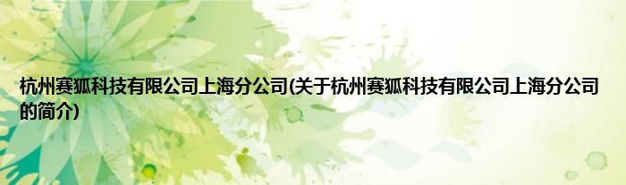 本文关于杭州赛狐科技有限公司上海分公司的简介就讲解完毕,希望对大家有所帮助。
