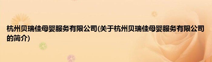 本文关于杭州贝瑞佳母婴服务有限公司的简介就讲解完毕,希望对大家有所帮助。