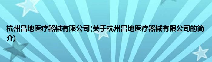 本文关于杭州昌地医疗器械有限公司的简介就讲解完毕,希望对大家有所帮助。
