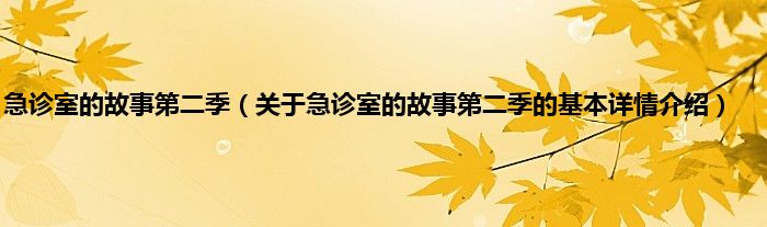 本文关于急诊室的故事第二季的基本详情介绍就讲解完毕,希望对大家有所帮助。