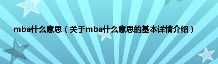本文关于mba什么意思的基本详情介绍就讲解完毕,希望对大家有所帮助。