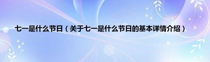 本文关于七一是什么节日的基本详情介绍就讲解完毕,希望对大家有所帮助。