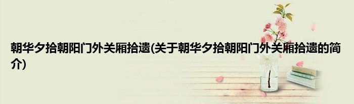本文关于朝华夕拾朝阳门外关厢拾遗的简介就讲解完毕,希望对大家有所帮助。