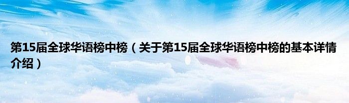 本文关于第15届全球华语榜中榜的基本详情介绍就讲解完毕,希望对大家有所帮助。