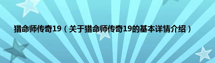 本文关于猎命师传奇19的基本详情介绍就讲解完毕,希望对大家有所帮助。