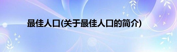 大家好,最佳人口,关于最佳人口的简介很多人还不知道,现在让我们一起来看看吧!