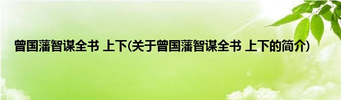本文关于曾国藩智谋全书 上下的简介就讲解完毕,希望对大家有所帮助。