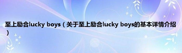 本文关于至上励合lucky boys的基本详情介绍就讲解完毕,希望对大家有所帮助。