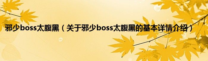 本文关于邪少boss太腹黑的基本详情介绍就讲解完毕,希望对大家有所帮助。