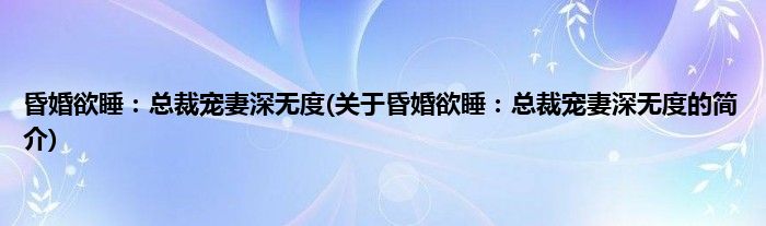 大家好,昏婚欲睡:总裁宠妻深无度,关于昏婚欲睡:总裁宠妻深无度的简介很多人还不知道,现在让我们一起来看看吧!