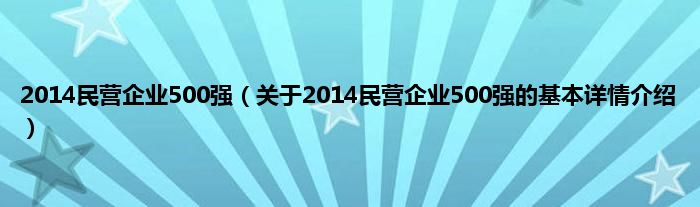 本文关于2014民营企业500强的基本详情介绍就讲解完毕,希望对大家有所帮助。