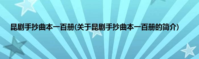 本文关于昆剧手抄曲本一百册的简介就讲解完毕,希望对大家有所帮助。