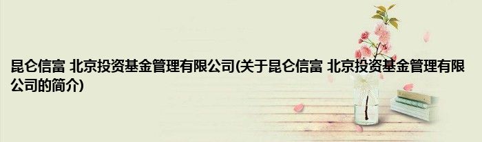 本文关于昆仑信富 北京投资基金管理有限公司的简介就讲解完毕,希望对大家有所帮助。