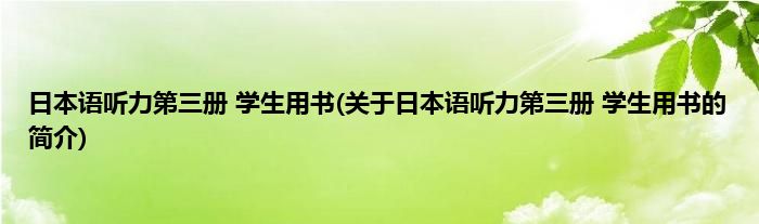 本文关于日本语听力第三册 学生用书的简介就讲解完毕,希望对大家有所帮助。