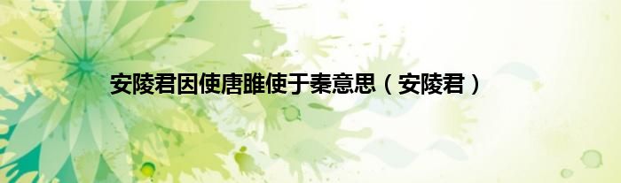 大家好,小问来为大家解答以上问题。安陵君因使唐雎使于秦意思,安陵君这个很多人还不知道,现在让我们一起来看看吧!