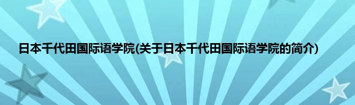 本文关于日本千代田国际语学院的简介就讲解完毕,希望对大家有所帮助。