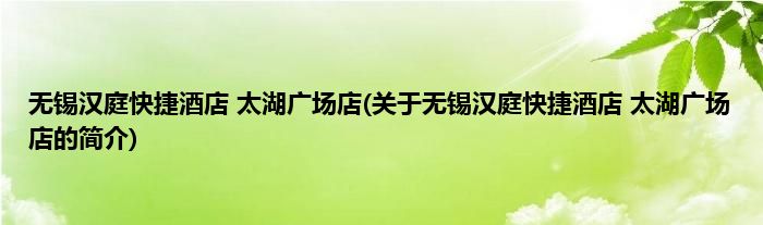 本文关于无锡汉庭快捷酒店 太湖广场店的简介就讲解完毕,希望对大家有所帮助。