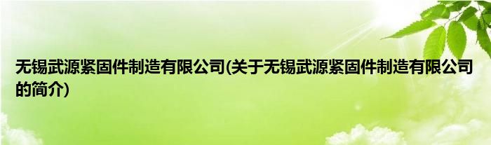 本文关于无锡武源紧固件制造有限公司的简介就讲解完毕,希望对大家有所帮助。