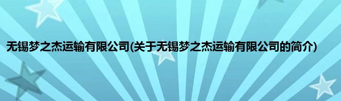 本文关于无锡梦之杰运输有限公司的简介就讲解完毕,希望对大家有所帮助。
