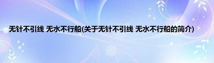 本文关于无针不引线,无水不行船的简介就讲解完毕,希望对大家有所帮助。