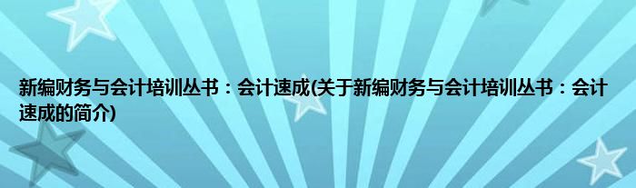 本文关于新编财务与会计培训丛书:会计速成的简介就讲解完毕,希望对大家有所帮助。