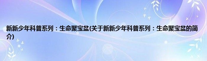 本文关于新新少年科普系列:生命聚宝盆的简介就讲解完毕,希望对大家有所帮助。